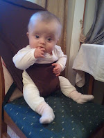 Siinä se kuvissa jo hienosti nököttää syöttötuolissaan! Ollaan ryhdytty harjoittelemaan tuotakin nyt ihan kunnolla kun neuvolassakin antoivat ihan virallisesti luvan.