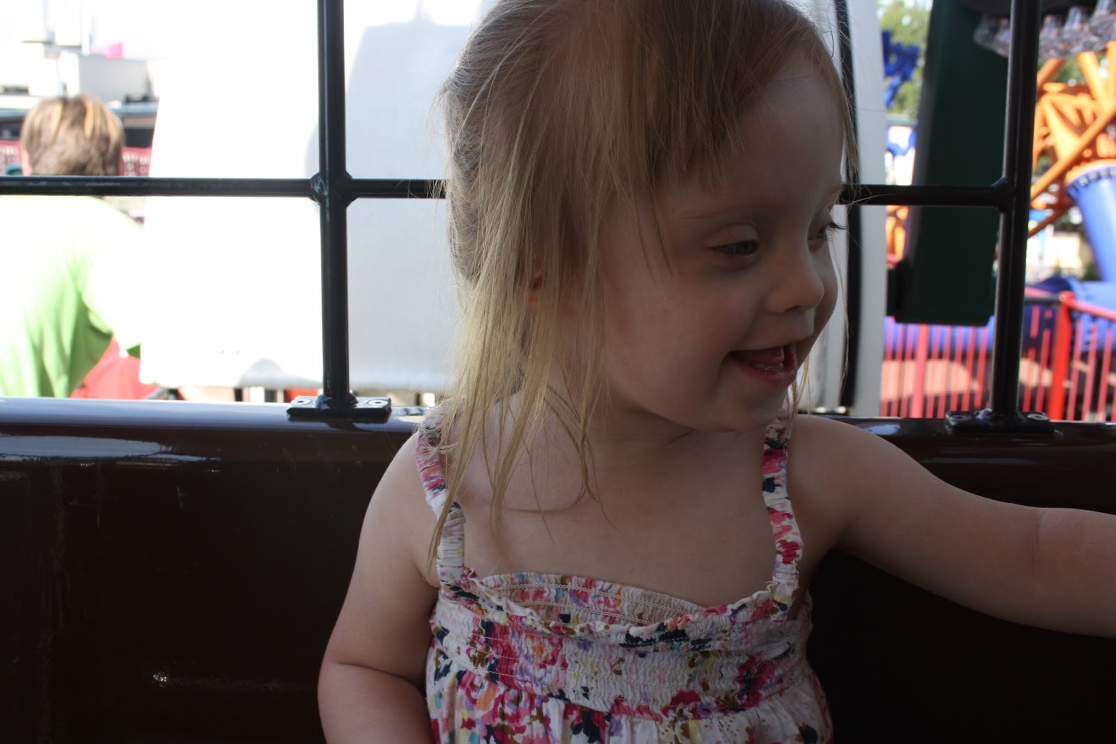 PikkuW ei halunnut lasten maailmanpyörään, mutta Piippis halusi. Oli siis mun vuoroni mennä seuraksi. Äitiä jänskätti, mutta tytsyä ei. Tästä neidistä joku saa vielä ihan loistavan Lintsi-kaverin, senverran hurjapää on jo nyt. Valitettavasti musta ei siihen hommaan ole, joten isi joutuu jatkossa juosta lasten kanssa nuo hurjimmat vekottimet läpi.