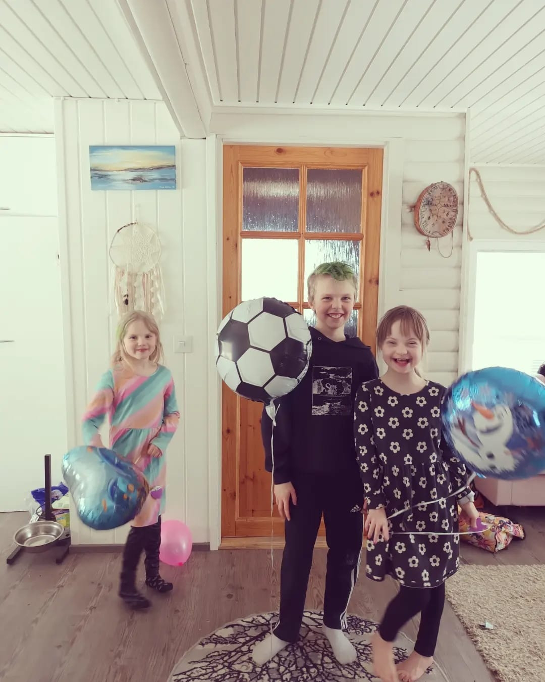 Vappupallot haimme Utsjoen kirkonkylältä - 50 km:n päästä. Voi iloa ja riemua, kun lopulta pallot löytyivät!